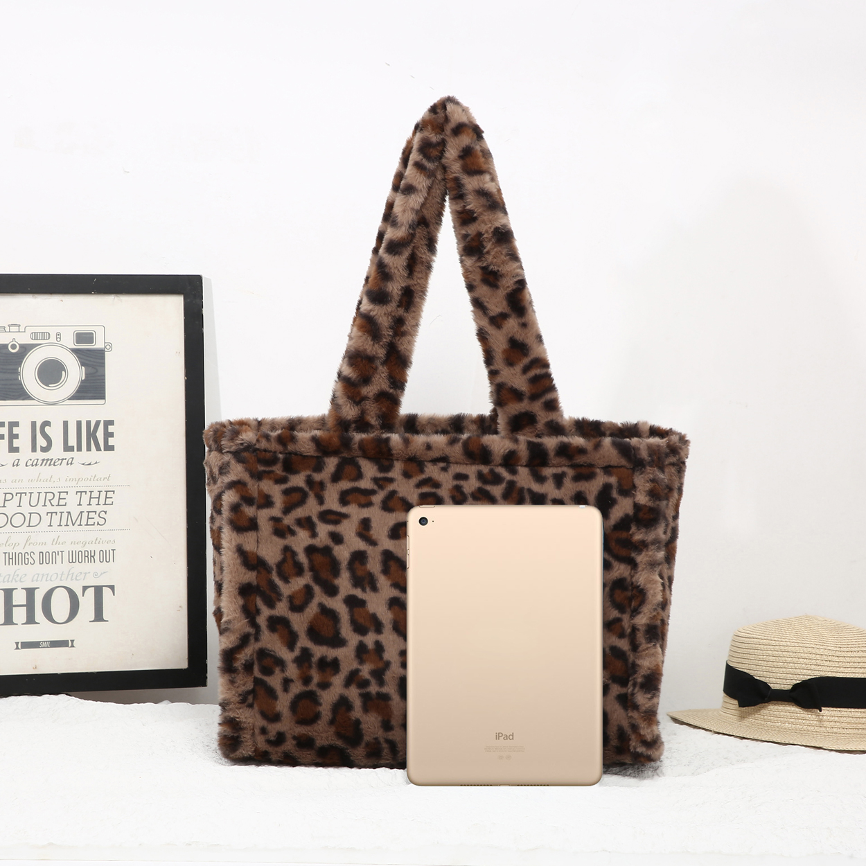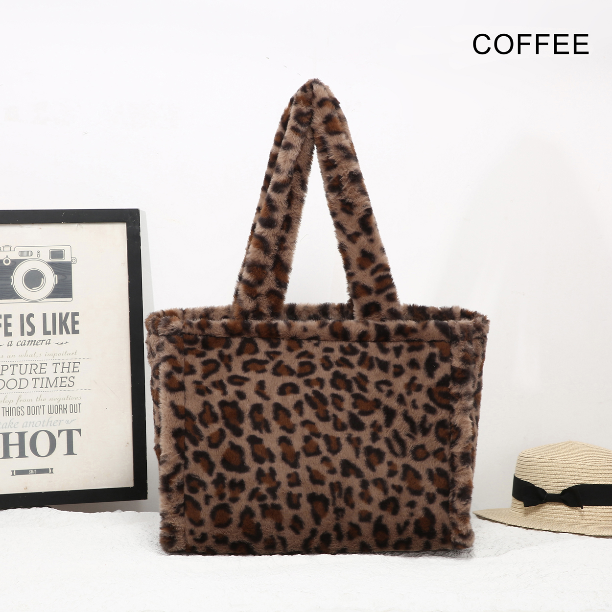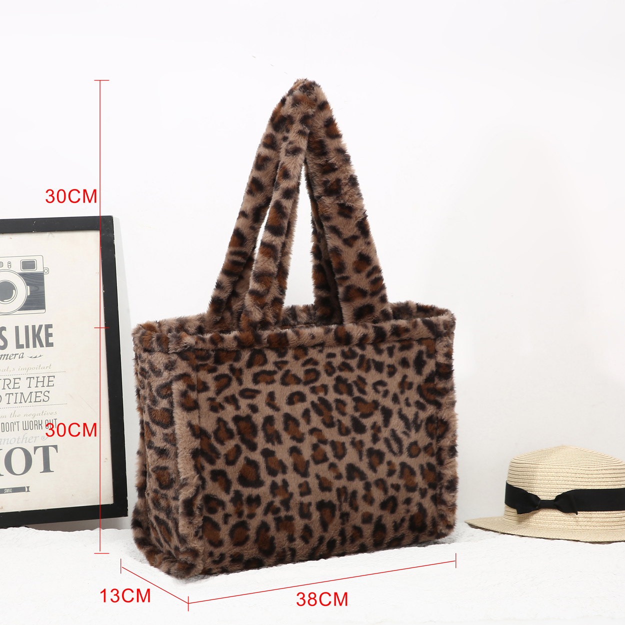 25425 Leopard Print Faux Fur Tote Bag quantity